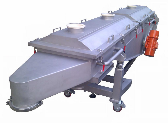 當(dāng)縱向安裝在篩體上的兩臺(tái)振動(dòng)電機(jī)做相對(duì)運(yùn)轉(zhuǎn)時(shí),其產(chǎn)生在橫向的激振力由于電機(jī)的相對(duì)運(yùn)轉(zhuǎn)而相互抵消,其縱向激振力通過(guò)傳振體傳遞到整個(gè)篩箱上,而使篩面振動(dòng),從而使篩面上的物料受其激振力而在篩網(wǎng)面上向出料品方向跳躍運(yùn)動(dòng),小于篩孔的物料通過(guò)篩孔而落到下層,經(jīng)連續(xù)跳躍后從出料口流出,由于篩分過(guò)程合理,物料經(jīng)振動(dòng)篩分級(jí)后,可取得幾種不同粒度的物料,完成物料的分級(jí)作業(yè)。
